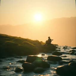 Peaceful Spanish acoustic, warm fingerpicked guitars, gentle percussion, ambient pads, meditative male vocals, uplifting