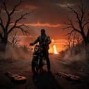metal, Southern metal biker anthem with male raspy vocals over dropped-tuned guitars, half-time stomp groove and deep, locked-in kick and bass; verses ride a dirty mid-tempo riff, chorus opens with wide gang shouts and soaring fiddle lines, breakdown brings a swaggering riff and tom-heavy hits while violin saws and bends for tension, violin, electric, deep