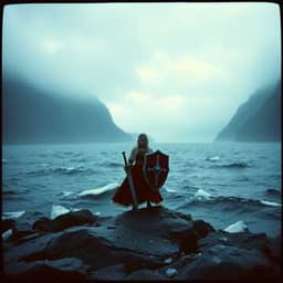 (Verse 1) Born 'neath the frost, a whisper of a frame, Father's cold eyes, a dying, flickering flame. "Weakling," he spat, "Let the ice claim its due," But mother's fierce love, a fire burning true. Small hands, clenched tight, a spirit untamed, Every stumble, every bruise, a battle proclaimed. "Shame of my blood," the old man's cruel decree, But the steel in her heart, he could never foresee. (Chorus) Fenrir's shadow, her spirit's wild call, She rose from the ashes, standing fierce and tall. Sword and shield, a dance of death and grace, Carving her legend, in this forgotten place. Blood on her hair, a crimson, raging tide, The smallest shieldmaiden, where legends reside! (Verse 2) Fjord's great hall, a feast turned to war, Rival's attack, crashing through the door. They mocked her slight build, a laughter cold and grim, But the storm in her eyes, would soon swallow them. Steel sang its song, a whirlwind of might, Each falling warrior, a testament to her fight. Red was the snow, red was the stone, Her vengeance a tempest, a harvest sown. (Chorus) Fenrir's shadow, her spirit's wild call, She rose from the ashes, standing fierce and tall. Sword and shield, a dance of death and grace, Carving her legend, in this forgotten place. Blood on her hair, a crimson, raging tide, The smallest shieldmaiden, where legends reside! (Bridge) Odin's blessing, Freya's guiding hand, Frigg's ancient wisdom, across the frozen land. She sailed the dark seas, raided and she farmed, A warrior's heart, forever unalarmed. From outcast to hero, the saga's fierce refrain, The girl they discarded, now bathed in blood and rain. (Guitar Solo - wild and driving) (Verse 3) A berserker's rage, a mountain of a man, His axe a whirlwind, ending her plan. A final clash, a thunderous blow, She fell to the earth, where crimson rivers flow. But a crooked smile, upon her bloodied face, For the Valkyries descended, with heavenly grace. (Outro) Lifted from the field, by wings of shining gold, Odin's hall awaited, a story to be told. Amongst the heroes, her spirit found its rest, A warrior's welcome, forever truly blessed. Smallest and mightiest, her name they will know, The shieldmaiden's saga, where legends forever grow! Yeah! Her legend forever grows!