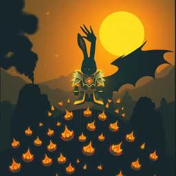 (SLOKA I) V kronikách věků svítí nová runa, žhavá jak dech draka z prastarých hor. Mocné zahrady, kdysi plné míru, teď sténají pod břemenem temnoty a vzdoru. Z trhlin země stoupá černý kouř, v něm se zjevují přízraky zapomenutých koření. A hrdina – ten s hvězdným mečem – kráčí zpět z nebes, neboť svět volá po spáse. (REFRÉN) Oooooh! Celestial Rabbit, Guardian of the Flame! Tvůj návrat otřásá říší chutí! Oooooh! Tvé tlapky nesou světlo jménem, co pálí temnotu a probouzí hvězdy! Vstávej, zahrado věčnosti, volání slyš, v brnění z ohně se vrací tvůj král! Oooooh! Celestial Rabbit, Herald of Dawn, druhý plamen legendy právě začal! (SLOKA II) Z hlubin mrkvového chrámu vane chlad, když česnekoví nekromanti otevírají bránu zkázy. V jejich stínech klíčí temné kořeny, jež chtějí zahltit svět tvrdou chutí prázdnoty. Ale hvězdy zpívají jiný osud — o rytíři světlé srsti, o ochránci duše kuchyně. Draci se snášejí k jeho boku, a jejich křídla tvoří symfonii božstva. (REFRÉN) Oooooh! Celestial Rabbit, Guardian of the Flame! Tvůj návrat otřásá říší chutí! Oooooh! Tvé tlapky nesou světlo jménem, co pálí temnotu a probouzí hvězdy! Vstávej, zahrado věčnosti, volání slyš, v brnění z ohně se vrací tvůj král! Oooooh! Celestial Rabbit, Herald of Dawn, druhý plamen legendy právě začal! (MOST) – (NARRATOR SECTION) (ve stylu Christophera Lee) “And lo… the gates of the Forbidden Pantry shattered, unleashing the Basilisk of Bitter Spices. Only the Celestial One, whose courage burns brighter than the Eternal Flame, may stand against the storm of darkness.” (Latinské sbory) “Ignis Aeternus! Cuniculus Dominus! Carmina Hortorum Resurgent!” (SLOKA III) Nad hlavou hrdiny se ozve třesk, když basilisk vyrazí z trhliny země. Jeho šupiny z pepře černější noci, jeho dech pálí jako tisíc pekelných kotlů. Ale králík se nebojí — v jeho očích plane odhodlání bohů. S hvězdným mečem sekne, svět se zachvěje a světlo pronikne i tam, kam slunce nikdy nešlo. (REFRÉN) – (FINÁLE) Oooooh! Celestial Rabbit, Guardian of the Flame! Vítězný křik zní údolím kořenů! Oooooh! Zahrady znovu rozkvétají jménem, které věky budou šeptat o spasení! Temnota padá, svět se probouzí, tvůj legendární plamen spaluje stín! Oooooh! Celestial Rabbit, Eternal Champion, druhá píseň ságy končí — třetí už vstává! ---