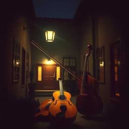 jazz, gypsy jazz, live, swinging with acoustic guitar and double bass, featuring an upbeat and playful texture, swing