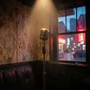 Gritty funky male vocals lounge singer style, horns, sax, bongos, almost beatnik, authentic sound of harmony acapella