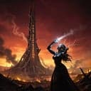 [Verse 1] Black sky Red rain Sirens melt in the static of pain Glass bones Charred stone Every flag on the planet dethroned Ash drifts Slow snow Cities kneel in a radioactive glow Last prayer Burned throat Radiation writes the final note [Chorus] Hail the queen of the ashen sun (hey!) Born from the blast where the world came undone Every warlord shakes Every raider runs Kneel or be broken Your reign is done Hail the queen of the ashen sun Infinite fury in a human form From the cinders From the fusion storm Hail Hail the ashen sun [Verse 2] She wakes Bare feet Footprints blaze through the twisted steel streets Cold eyes White fire Every gun turns away from its buyer Skull crown Scar cloak Iron thrones turn to splinters and smoke One gaze War ends Every king learns how an empire bends [Chorus] Hail the queen of the ashen sun (woah!) Born from the blast where the world came undone Every warlord shakes Every raider runs Kneel or be broken Your reign is done Hail the queen of the ashen sun Infinite fury in a human form From the cinders From the fusion storm Hail Hail the ashen sun [Bridge] She walks through the fallout Breathing it in Halo of embers on radiant skin “Bring me your tyrants Your thieves Your knives” Voice like a siren that severs their lives [Chorus] Hail the queen of the ashen sun (hey!) Born from the blast where the world came undone Every warlord shakes Every raider runs Kneel or be broken Your reign is done Hail the queen of the ashen sun Infinite fury in a human form From the cinders From the fusion storm Hail Hail the ashen sun