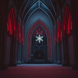 Dark gothic holiday, cathedral bells, haunting choirs, deep cello, light trap percussion, icy chimes.