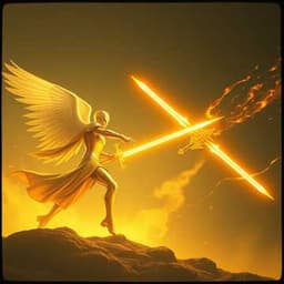 [Chorus — Choir of the First Light] Lux aeterna, surge! In nomine veritatis, rise! The judgment calls, the void shall weep, By our hands, the law shall breathe! [Verse I — Seraphael’s Descent] Silver wings unfold across the bleeding dawn, Heaven cracks — the sun becomes a blade reborn. Twelve halos ignite, forming runes of vow unspoken, “By the decree of balance, your reign is broken.” O’ shadows, bend before the light’s decree, Even night must kneel before purity. “Valen’thir etrass… solas ven’arum.” The voice echoes — divine, metallic, and doom. [Bridge I — Legion March] Step, march, pulse in sync with cosmic law! Iron seraphs, your will — the flawless flaw. Every step, a universe reshaped, Every scream, a sinner unescaped. [Chorus — Choir of the Second Dawn] Caelestis iudex, dominus verum! Lux clamat, abyssum sternum! Break the crown of endless sin, And let the silence begin! [Verse II — The Clash Begins] Blades of light and shadow intertwine, The ground dissolves — replaced by holy line. Dark Lord’s laughter meets the sun’s defiance, Every clash births a thousand suns in alliance. Flames of sanctum, frozen wrath of hell, Heaven’s choir drowns the void’s own knell. “Your law is dust,” the Abyss proclaimed, “My dust is law,” the Arbiter declaimed. [Bridge II — Celestial Invocation] Raise your halberds, oh sons of dawn, “Et’ra luminar, karen vas’tor!” Lightning sings through golden veins, While the dark screams back in pain. [Refrain — Seraphael’s Voice] “By truth, I bind the stars! By judgment, I unmake scars! By the covenant unseen, I erase what should not have been!” [Verse III — When Heaven Bleeds] The battlefield turns into prismed glass, Every tear reflects an ancient past. The Arbiter bleeds — but the light won’t fade, Even wounded, the sun cannot be swayed. “Forgive me, oh cradle of time,” he said, “My blade shall pierce both life and dread.” “Val’kren oss thar’el… lumen’na veris.” He raises his sword — creation trembles, abyssal hiss. [Bridge III — The Final Judgment] A thousand voices blend into one, The law of light eclipses the sun. Seraphael screams, both wrath and grace, “Darkness shall remember my face!” [Final Chorus — The Collapse] Lux aeterna, valen thross! Et’ra judicar, karen vos! Truth ignites the fallen sky, Let all false gods burn and die! Rise, my legions, wings of flame! Et’mara celestum — purge their name! For where law stands, no sin remains, And where I walk — eternity reigns! [Outro — Whisper of the Heavens] When the storm calms and stars align, Only silence marks the line. Between dark and light’s last breath, The Arbiter stands — defying death. “The Law does not bow… …it remembers.”