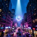 Upbeat dance pop boy band, energetic male vocals, powerhouse female feature, club beat, catchy chorus, layered harmonies