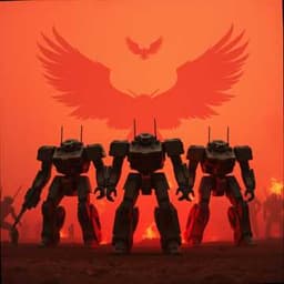 (Verse 1) In the dust of the land that twirled and whirled, A platoon of mechs, flags unfurled. They march to fight, but the city's far, New Colossus gleams like a fading star. The enemy closes in, sharp and fast, No way out, they stand at last. Cut off from the city, the gates sealed tight, The mechs brace for the coming fight. (Pre-Chorus) With servos screeching, and guns ablaze, The oil and blood obscured their gaze. (Chorus) In the dark, our numbers wane, The mechs are falling, we feel the pain. We hold the line, we fight as one, Until the Winged Scimitars come. (Verse 2) Explosions roar, and shadows fall, The mechs fight on, they give their all. Steel and fire, the ground shakes, But for every loss, another takes. The LT stands, with a steady hand, In the heart of the storm, they make their stand. The enemy presses, unrelenting and fast, And the mechs begin to break at last. (Pre-Chorus) With servos screeching, and guns ablaze, The oil and blood obscured their gaze. (Chorus) In the dark, our numbers wane, The mechs are falling, we feel the pain. We hold the line, we fight as one, Until the Winged Scimitars come. (Bridge) Then, through the sky, they hear the roar, The Winged Scimitars, arriving once more. With wings of fire, and blades of steel, They break through the night, a saving appeal. The mechs are rallied, as hope ignites, The Winged Scimitars, they turn the fight. With gunfire and missiles, they clear the way, And the enemy falters, begins to sway. (Chorus) Now the Winged Scimitars come to save, In the darkness, we fight the wave. With blades in the sky, and fire on the ground, Together we stand, the enemy’s bound. (Outro) In the ashes of battle, the mechs stand tall, Together with the Scimitars, we’ll never fall. We know at last, we’re not alone, The Winged Scimitars have brought us home.