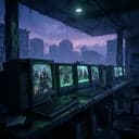 rap, Dark electro-rap: distorted synth bass and eerie pads, chopped game SFX textures, swung trap hats and heavy kick. Verses in a tight, urgent pocket with whispered doubles; hook explodes with shouted gang vocals and riser sweeps. Male vocals, aggressive delivery, occasional pitched-down ad-libs and glitchy vocal chops in turnarounds., electro