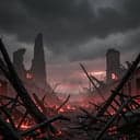 [Verse 1] Smoke on a sunless sky Boot prints in bone-white dust Names ground down to numbers Steel turned back to rust You drag that tattered banner Through fields that once were towns Tasting iron in the air Hearing echoes underground [Chorus] Stand amongst the ashes Of a trillion dead souls Ask the ghosts if honor matters If the oath can make them whole All your proud and burning questions Hang heavy in the cold Stand amongst the ashes The silence is your answer [Verse 2] Helmets split like fallen crowns Charred rings on brittle hands Medals black with melted pride Scattered through the sand You shout into the ruin Throat raw from every name Waiting for a verdict From a kingdom made of flame [Chorus] Stand amongst the ashes Of a trillion dead souls Ask the ghosts if honor matters If the oath can make them whole All your proud and burning questions Hang heavy in the cold Stand amongst the ashes The silence is your answer [Bridge] Was it glory? Was it greed? Were you faithful? Or just in need? (oh) Every flag you ever followed Every vow you ever swore Turns to dust between your fingers As the quiet hits the floor [Chorus] Stand amongst the ashes Of a trillion dead souls Ask the ghosts if honor matters If the oath can make them whole All your proud and burning questions Hang heavy in the cold Stand amongst the ashes The silence is your answer