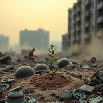 [Intro] Ash in my teeth Iron in my lungs Sirens gone silent I don’t trust the hush [Verse 1] Boot prints Burned into the gravel Sandbags slumped Like they finally gave up Names carved In a busted metal helmet Half‑buried By the sleepless dust I still flinch At a car door slamming See flares In a flicker of a lamp Count scars On the walls of the bunker Tracing every line Like a map out of hell They told us Hold the line or vanish We held it Till our fingers bled raw Now the sky Looks naked and harmless And that Is the strangest thing I saw [Chorus] It’s over It’s over We outlived the fire We ran out of targets We buried the choir Raise up your hands No rifle No wire The war finally ended But what did it retire? (hey!) It’s over It’s over Scream it till it’s tired The war finally ended We crawl out of the pyre [Verse 2] Field of Twisted metal flowers Tank tracks Filled with weeds and glass Watchtowers Cracking at the ankles Rust veins Creeping up the mast Letters Stuffed in a pocket Sweat‑stained Streaked with old rain I read them Like a book of ghosts Every “come home soon” Now a question in my brain We learned Every shade of terror Every way A heartbeat can stall Now children Paint on the blast wall Turning craters Into games of ball I taste Cordite in the coffee Hear prayers In the squeal of a brake Peace feels Like a bad imposter Like a stranger Wearing my face [Chorus] It’s over It’s over We outlived the fire We ran out of targets We buried the choir Raise up your hands No rifle No wire The war finally ended But what did it retire? (oh!) It’s over It’s over Carve it in the air The war finally ended But the battle’s in repair [Breakdown] [Drums drop to half‑time Guitars lurch and stagger] I hear marching In the quiet (too loud) I hear shouting In the lull (so proud) I feel crosshairs On my back Right now But it’s only It’s only My own Pulse [Gang shouts Call‑and‑response] NO MORE ORDERS (no more graves) NO MORE FLAGS (we’re not slaves) NO MORE HERO MASKS TO WEAR JUST THESE SHAKING HANDS WE SHARE [Verse 3] Morning Crawls under the shutters First sun I’ve seen in my sleep I wake To the clink of dishes Not shells Chewing through the street Neighbors Drag out broken furniture Build tables From the splintered frames We sit Where the checkpoints once were Passing bread Across the old lanes Someone Starts humming an anthem Stops short Lets the last note fall We don’t need Any marching music Just the sound Of a late‑night call I plant My shovel in the garden Turn soil That once hid steel If anything Is worth defending It’s the right To finally feel [Chorus] It’s over It’s over We outlived the fire We ran out of targets We buried the choir Raise up your hands No rifle No wire The war finally ended Let the silence lift higher (yeah!) It’s over It’s over Say it till it’s true The war finally ended Now what do we do? [Outro] [Instruments thin Toms rumble under a low chant] It’s over… over… (whispered) over… over… One breath Then another One step From the wire The war finally ended We walk Out of the fire