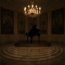 Darkly elegant chamber piece in a minor key; silver, singing piano leads with agile right-hand runs and ominous left-hand figures. Cello holds a tense, driving ostinato while viola and violins weave close-voiced harmonies and sharp accents. Flute enters as a ghostly, lyrical counter-voice, occasionally doubling and then breaking away into high, icy flourishes. Dynamic swell from hushed, suspenseful opening to a stormy, martial peak, then a poised, candlelit fade. Instrumental, 2–3 minutes, concert hall ambience., string quartet, cello