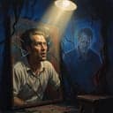 Etched in the shadows, behind the plastic curtains. looking into the mirror I can see.I'm not perfect, wiping my face with water.Looking behind feeling the shadows pull me out of my mind.My Cameras in my face lights behind me painted on the canvas.\n Shadows binding. Inside the angerThe man is hanging on every word while he's standing in front of the camera lights behind on the canvas , the shadows line Ever closer to the end etching inside my skin like a tattoo forever in printed with all the colors green , blue and red In the shadow stands a man who doesn't understand\n Trying to do the best that he can as he washes his face in front of the mirror the shadows bring him nearer as he turns his head is mine fades away. And he sees the reverse image of himself once again , fade away