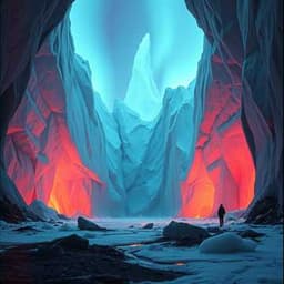 Cold cinematic ambient soundtrack, volcanic drones, subterranean rumble, icy winds, slow, instrumental only