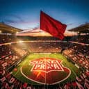 Stadium chant, Sparta Praha fans singing “Sparta olé olé”, loud crowd, drums, clapping, football stadium energy