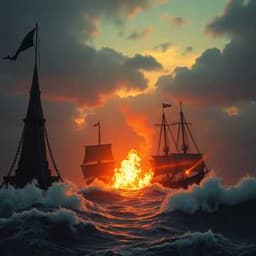 [Verse 1] Black flag on the spire Coins clink Loaded dice You pray to the light I drink from the fire Cross carved in your armor Skulls carved in my mast Holy words on your banner I just laugh and raise my glass [Chorus] Six six six vs seven seven seven Steel and scripture Fang and feather You call down saints I call the storm Let heaven tremble when our worlds collide together Six six six vs seven seven seven Who draws blood and who gets forgiven? On this deck under a shattered sky Only truth survives [Verse 2] You sing in stained-glass colors I roar in rust and chain Your harp hums ancient comfort My drum is thunder War And rain Candles on your altar Lanterns in my hold You kiss relics I kiss rations Both of us afraid of getting old [Chorus] [Bridge] [low vocal register] Monk’s bell tolls Over crashing foam Latin verses in the wind Shiver through my bones Flute and fiddle Circle with the drum Halo over battlefields Crown of horns Here I come [crescendo] [guitar solo] [Chorus]