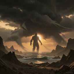 THE HAND THAT ENDS THE WORLD The sky split wide.. like a wound in time, the mountains bowed down to the judge of divine. The sun turned black, the stars went blind, and the voice of the Lord shook all of time... He said, “I warned you, children, but you hardened your breath, now behold the hour where I trample death.” The oceans rose up, because they know his name, and the earth cried out.. judged the same. There’s no mercy left, for the unrepentant crowd, just the roar of thunderous lightning, striking clouds. When the hand of God comes down like fire, every wicked throne burns in his ire… No man can bargain, no king can stand, when the holy one stretches out his hand. The heavens shake, the nations fall, when God’s had enough, he’ll end it all… Seven angels stood with trumpets raised, and the earth fell silent like it knew it was weighed. A mountain of flame crashed into the sea, and the smoke rose up like a final decree. He said, “I’m the Alpha who watched your wars unfold, now I’m the Omega who reclaims what I hold.” The rivers ran dry, the sky turns to stone, and the proud learned fear at the foot of His throne. His voice cut through like a sword of light, saying, “I judge the darkness as I reclaim the night.” When the hand of God comes down like fire, every wicked throne burns in his ire. No man can bargain, no king can stand, when the holy one stretches out his hand. The heavens shake, the nations fall, when God’s had enough, he’ll end it all… The dragon rose up with a crown of lies, but the lamb stepped forth with fire in his eyes. He said, “Your time is over, your kingdom is done, I’ve come to reclaim my world, it is mine! “I am the righteous one.” The earth trembled hard at his final word, as the armies of heaven unsheathed their swords. But no blade struck, no angel fought, ’cause the breath of God ended every thought.’ When the hand of God comes down like fire, every shadow flees from his holy pyre. No darkness lingers, no evil can stand, when the king of kings moves His hand! The world remade, the old one gone, when God speaks judgment, our creation will move on. He whispered low, with a voice like dawn, “I end what’s broken ..so now, the new can be reborn.”